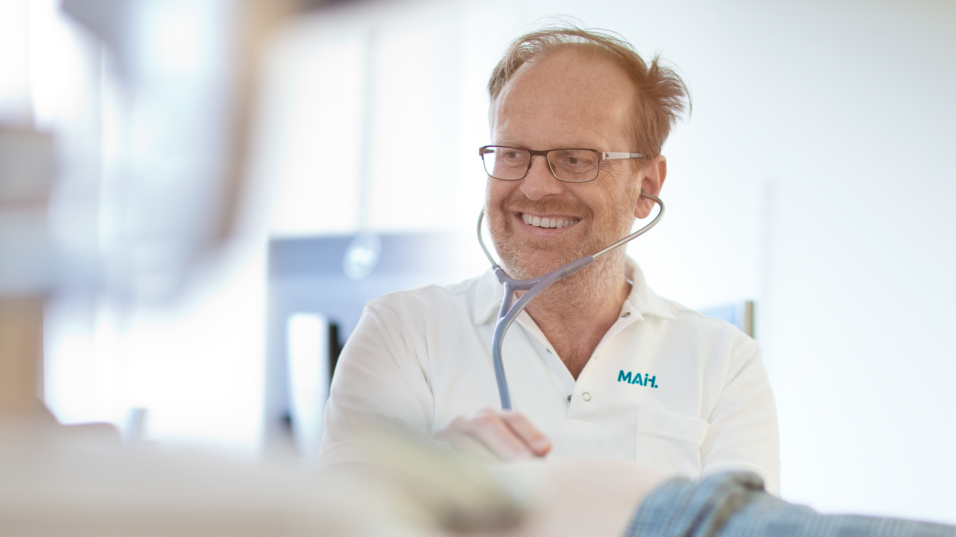 Thomas Kempmann, 1967, hat in Lübeck, Teneriffa und Norwegen Medizin studiert und 2001 die Approbation erlangt. Seit 2019 praktiziert er in der Schweiz. Davor hatte er verschiedene Stellen als Assistenz-, Ober- und Facharzt in Deutschland inne. Im MAiH bietet er gastroenterologische Sprechstunde an und sorgt sich somit auch um die Darmvorsorge. Thomas Kempmann lebt mit seiner Familie in Baden-Württemberg. In der Freizeit ist er häufig beim Wandern anzutreffen.