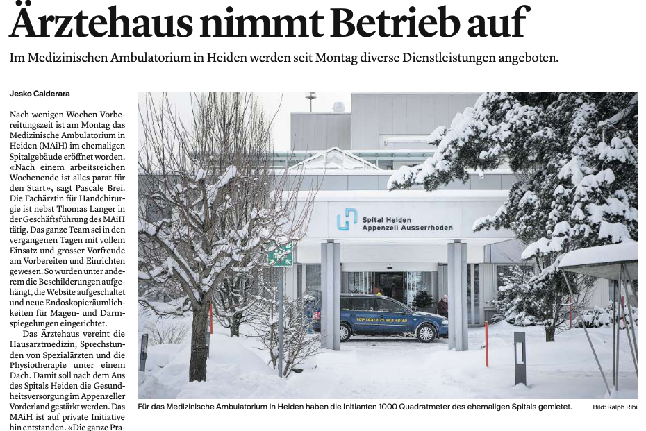 Im Medizinischen Ambulatorium in Heiden werden seit Montag diverse Dienstleistungen angeboten.