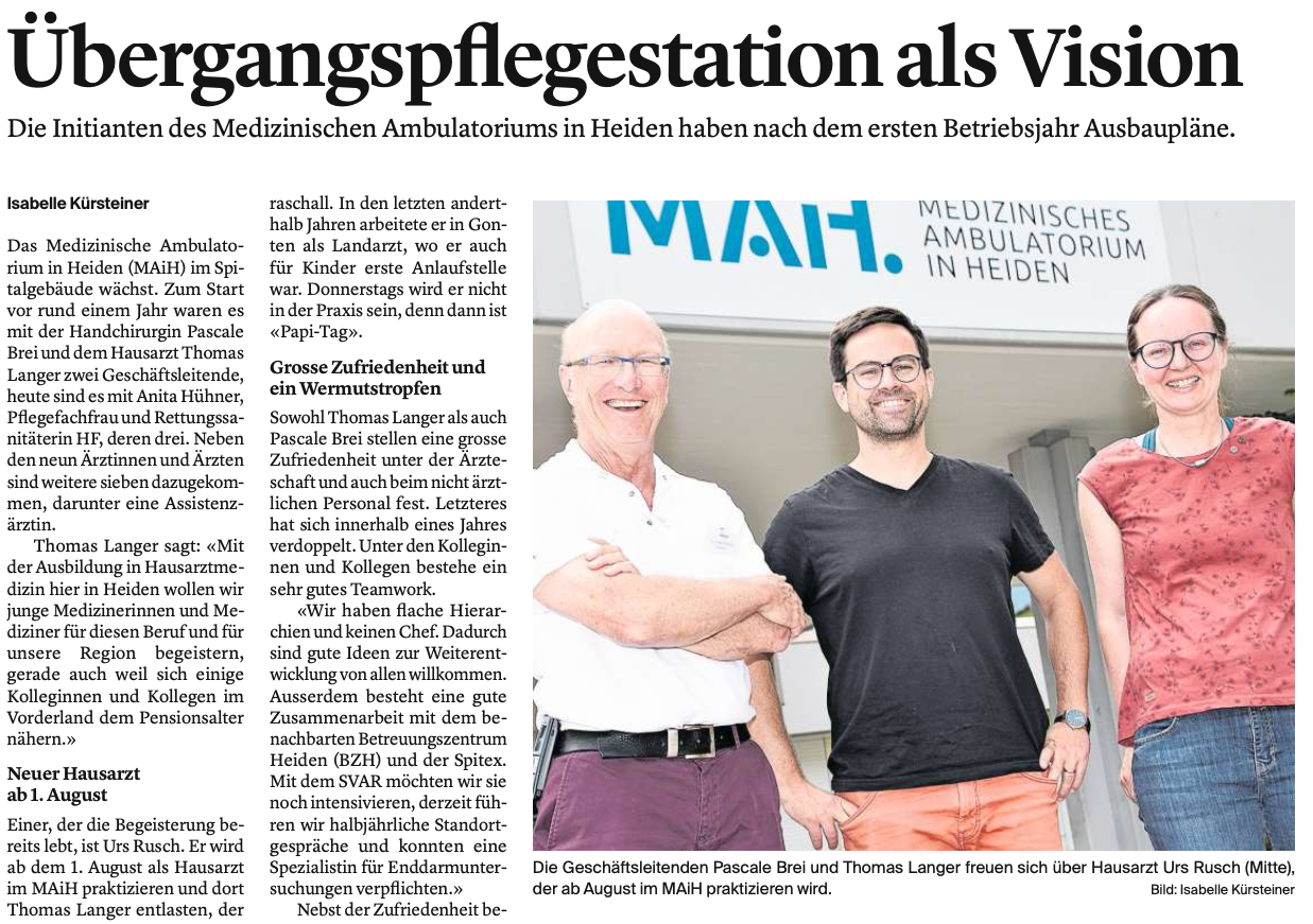 Die Initianten des Medizinischen Ambulatoriums in Heiden haben nach dem ersten Betriebsjahr Ausbaupläne.