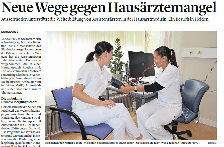 Ausserrhoden unterstützt die Weiterbildung von Assistenzärzten in der Hausmedizin. Ein Besuch in Heiden
