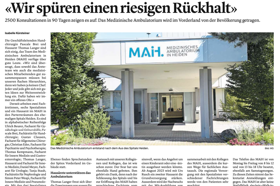Im Medizinischen Ambulatorium in Heiden werden seit Montag diverse Dienstleistungen angeboten.