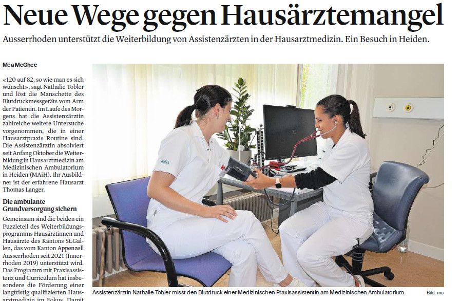 Ausserrhoden unterstützt die Weiterbildung von Assistenzärzten in der Hausmedizin. Ein Besuch in Heiden